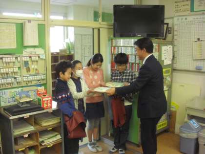 また、お世話になった先生方におすそ分けを作り、副校長先生に受け取ってもらいました。