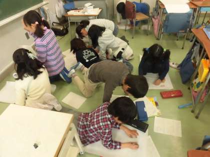 今回は見学したお店について分かったことを模造紙にまとめるグループ新聞を作ることにしました。