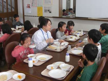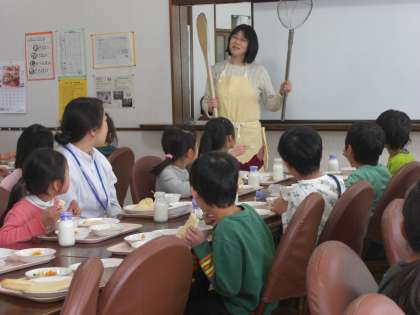 また、今日は、調理員さんとの会食もあり、ふだんなかなかお話できない方とおしゃべりしながらいっしょに食べることができて、子どもたちにとってもとても楽しい時間となりました。