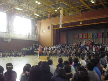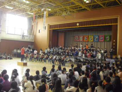 6年生はお礼として「情熱大陸のテーマ」を合奏しました。迫力のある演奏に、全校の子どもたちや参観してくださった保護者の方々から大きな拍手をもらいました。