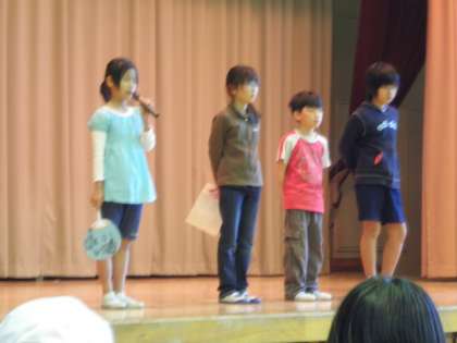 今朝は、代表委員会が、全校児童に向けて、運動会の取り組みについて説明をしました。