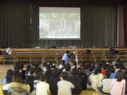 6校時の第2部はPTA学級代表の方々が主催となって、学級対抗の玉入れ大会をして楽しみました。その後には6年生を送る会で合奏した「情熱大陸のテーマ」の映像をみんなで視聴し、最後にはPTAの方々から子どもたちへのプレゼントとして川場移動教室、日光林間学園を様子が収録されたDVDが渡されました。