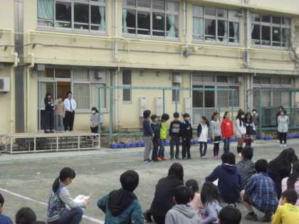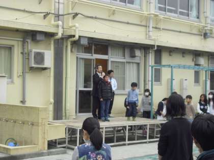 最初に校長先生から、転入生の2人の紹介がありました。新しい仲間を大きな拍手で迎えました。
