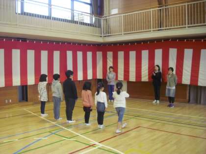 1年生から6年生、つくし学級の各学級から、修了証を受け取る代表の子どもたちが集まり、所作について教えてもらっていました。