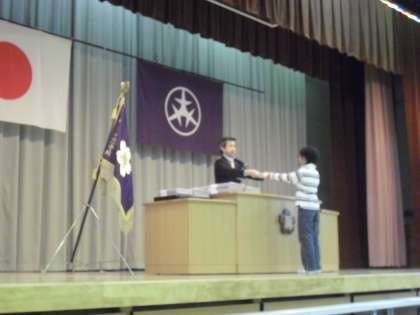 今日は修了式を行いました。各学級の代表児童が、校長先生から修了証を受け取りました。
