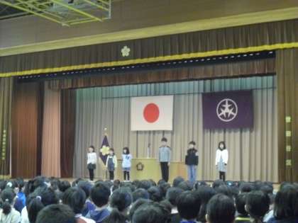 また、1年生、4年生の各学級から選ばれた子どもたちが「児童代表の言葉」を元気な声で話しました。自分の成長を見つめ、堂々と話す姿に大きな拍手が送られました。
