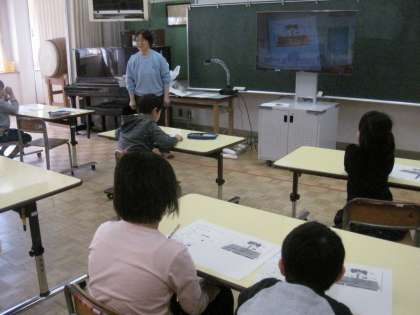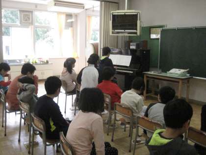 2時間目につくし学級の学習室で「音楽」の学習をしました。つくし3組の岡崎先生のピアノ伴奏に合わせて、全員で大きな声で元気よく「校歌」と「春の風」を歌いました。つくし学級では、1年間を通して「校歌」の歌唱練習を続けているので、どの子も自信をもって歌うことができています。1年生にも早く覚えてもらえるようにと2年生以上の子どもたちは、頑張って歌っていました。「春の風」も今の時期にちょうどよい歌で、みんなで気持ちよく声を響かせて歌いました。最後にピアノの音に合わせてじゃんけん列車をしました。リズムに合わせながら、友だちとつながって歩くことを楽しみました。