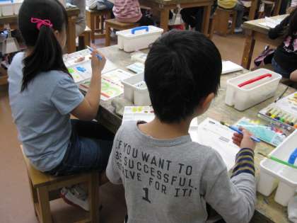 3年生は今年度から図工室で図画工作科の学習を行います。最初に図工室での約束等を確認しました。みんな真剣に話を聞いていました。初めての図工室での学習に、少し緊張しているようでしたが、絵の具を使って思い思いに描き、楽しく活動できました。