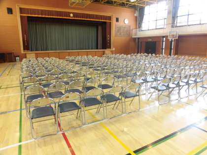 今日は5年生が体育館での保護者会全体会の準備をしました。