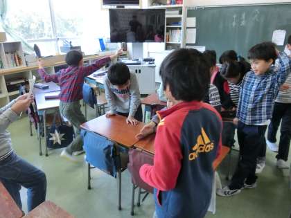 4年生は学校の生活や行事について、寸劇で紹介します。