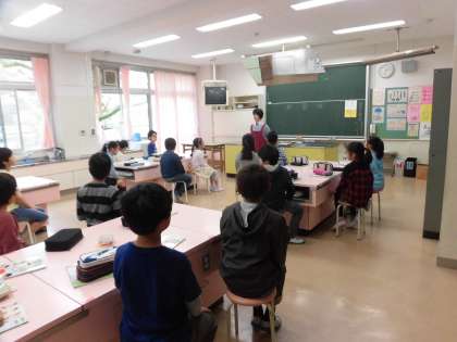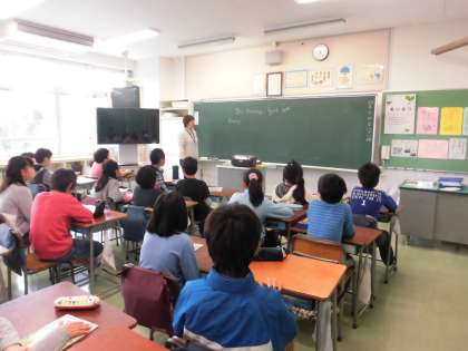 外国語活動と家庭科は高学年から新たに学習を始める教科です。今日の授業を子どもたちはとても楽しみに待っていたようです。