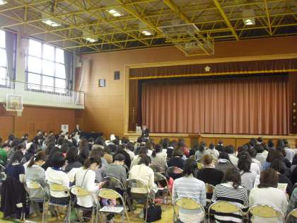 今日は1,2,3年生の保護者会を開きました。3学年合同の全体会が体育館で行われ、校長先生から学校経営方針をはじめとした話や、教員の紹介がありました。