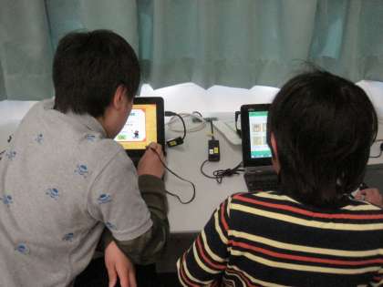 5・6時間目にパソコン室でタブレット型端末を使った学習をしました。今日は、手紙を書くための便せん用の用紙を作ってみました。お絵かき用のソフトを使って模様や好きな絵を描いたり、カメラ機能を使って写した写真を取り込んだりしてオリジナルの便せんを作りました。この便せんを使ってお世話になった先生への手紙を書く予定です。「先生にあげたら喜んでくれるかな。」「自分で描いた絵を模様にしたいな。」と、先生への思いを込めて作ることができました。