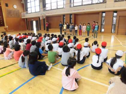 今日の中休みは、これからの外遊びを楽しめるようにと、代表委員会のお兄さんお姉さんが「烏山ワイワイタイム」を企画してくれました。