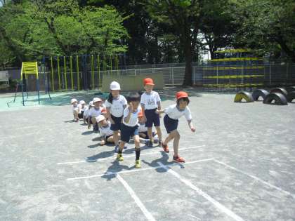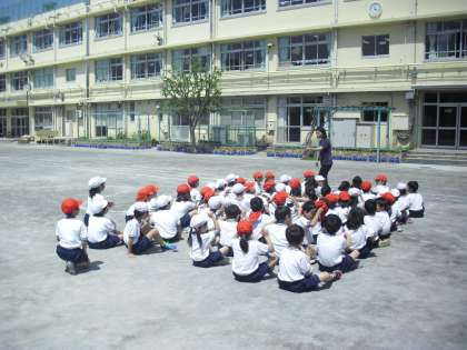 3校時の体育では、1、2組が合同で50m走のタイム計測をしました。運動会へ向けての取組を続けています。