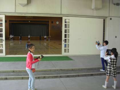 今日は2組が2校時に生活科の学習をしました。タブレット端末を使って校内のお気に入りの場所を撮影し、グループの仲間に発表するための準備をしました。27日には1年生を案内する2年生。お兄さん、お姉さんとしての務めを果たせるよう、入念な準備をしています。