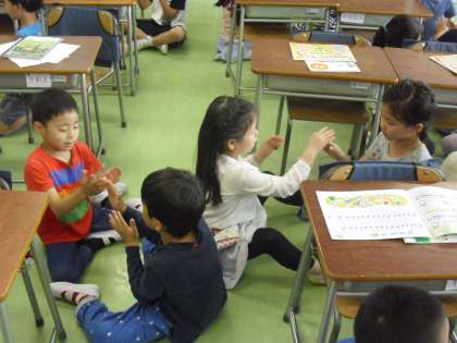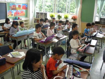 まずは手遊び歌をして、リズムを体で感じ取りながら楽しく歌いました。鍵盤ハーモニカの演奏練習では、指づかいやタンギングに気を付けて取り組みました。