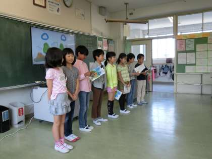 土曜授業で保護者の方も見ている中、少し緊張しながらも、一生懸命に子どもたちは発表をしていました。