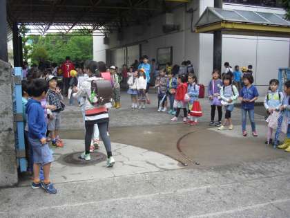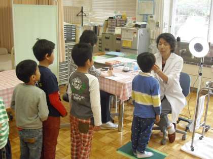 眼科健診では並んで静かに待ち、名前を呼ばれたら元気に「はい!」と返事をして受診しました。