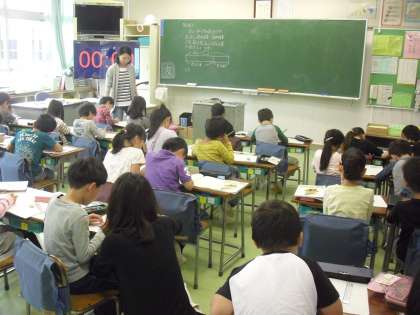 算数では、古田先生と担任でチーム・ティーチングを行っています。今日も2年生すべての学級で、チーム・ティーチングによる授業が行われました。