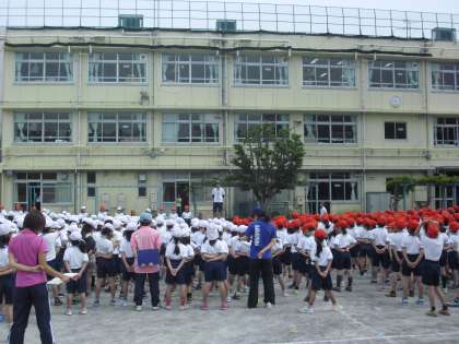 体操の隊形への移動の方法や、ラジオ体操、音楽に合わせた行進を練習しました。音楽係、全校運動係をはじめ、5,6年の児童が全校の前で係の仕事を全うしていました。