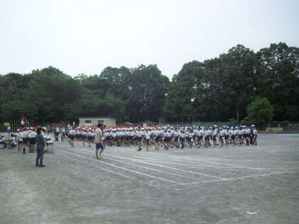 今朝1時間目に第1回全校練習が行われました。