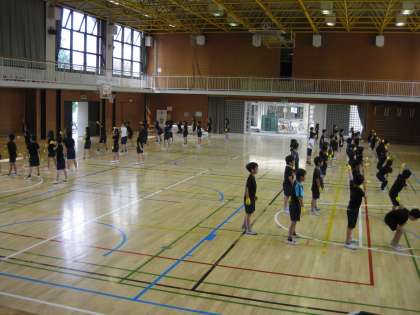 いよいよ今週末は運動会です。これまで練習を一生懸命頑張ってきました。今日は1時間目に全校練習、5、6時間目に体育館練習と校庭練習を行いました。団体演技と団体競技、短距離走の入場から退場まで通して練習しました。残りわずかですが、最後まで頑張りたいと思います。