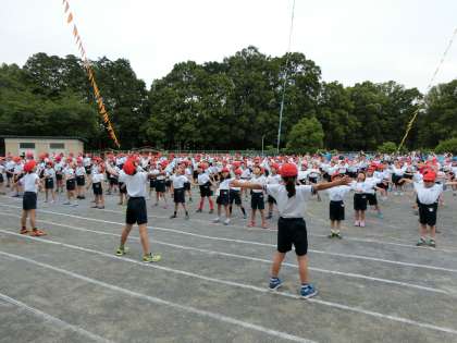 *準備運動ではラジオ体操第一を行い、体を十分にほぐしました。また、整理運動では、軽いストレッチを取り入れた運動を行いました