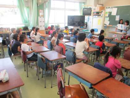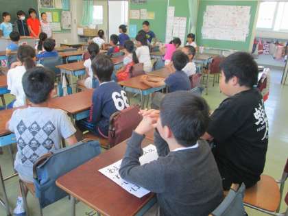 本日、たてわり班活動の1回目を行い、自己紹介をしたり班の旗を紹介したりしました。