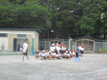 6/7 2年生 東京都統一体力テスト「ソフトボール投げ」の様子。