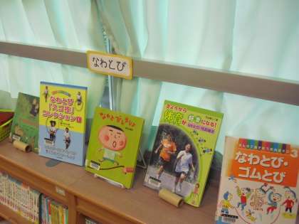 図書館内には、縄跳び旬間の企画として縄跳びや運動遊びの特集コーナーなどが設けられ、子どもたちの生活に根差した、読書意欲を喚起させる取組が続けられています。