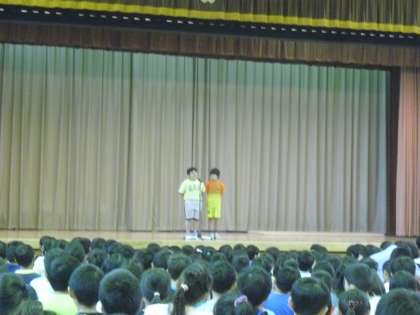 校長先生からは梅雨の季節に関連して「紫陽花」についてのお話がありました。また、6月の「人格の完成をめざして」のテーマである「責任」について、当番や係の仕事に取り組むことの意義についてお話がありました。