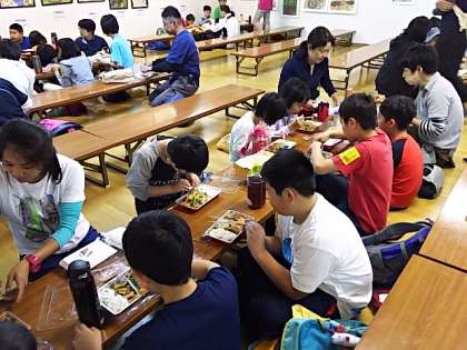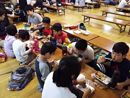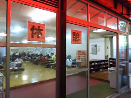 たくさんの動物と出会ったあとは、おみやげの買い物タイム。お小遣いで、思い思いの買い物をしました。現在、無料休憩所をお借りしてお弁当を食べています。雨が本降りになっています。