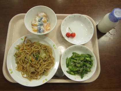 ランチルーム給食のスペシャルデザートは、今が旬の『さくらんぼ』です。
