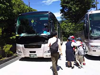 体育館で閉園式を行いました。3日間お世話になった施設の方々に感謝の気持ちを伝え、バスに乗り込みました。目的地の恩賜林庭園に向かっています。