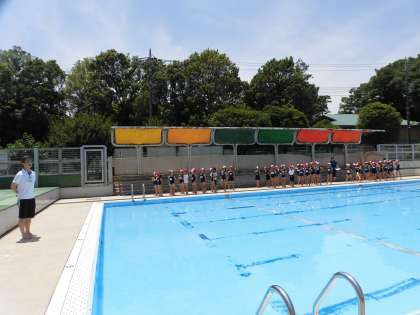 しかし、せっかくのお天気だったので、プールサイドでプール開きを行いました。