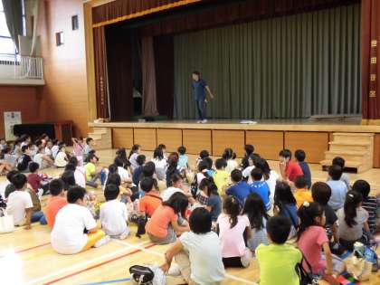 お昼は持ってきたお弁当を体育館で3・4年生の縦割り班に分かれて楽しく食べました。