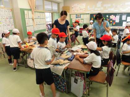 今日は、図工の魚田先生と体育の仲田先生も見に来てくださいました。工夫したところや気に入っているところを嬉しそうに話していました。