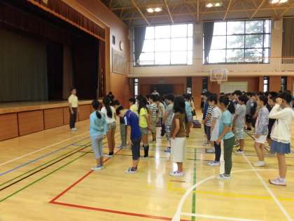 今日は残念ながらプールに入ることはできませんでしたが、体育館でプール開きを行いました。校長先生からは、めあてをもつこと、ルールを守ること、話をよく聞き安全に楽しむこと、の大切な3つのお話がありました。その後、代表児童が今年の目標を発表しました。自分のめあてと、2学期の水泳記録会に向けて頑張ってほしいと思います。