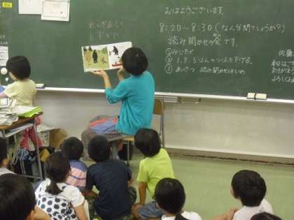 2組では朝、保護者の方に読み聞かせの会を開いていただきました。お話を楽しむことができたようです。