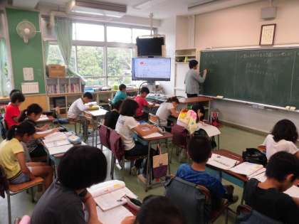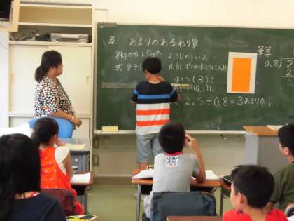 今日は「あまりのある小数のわり算」の学習をしました。小数点の移動は子どもたちが、とてもつまづきやすいところです。習熟度別にクラス分けをして、丁寧に取り組んでいます。