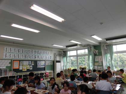 今日は、2回目の縦割り班遊びと今年度初めての交流給食でした。6年生は班のリーダーとして、配膳や遊びの計画、進行で活躍していました。今日のメニューは、みんなが大好きなカレーライス。美味しくいただきました。