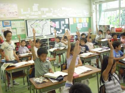 今日は1組が国語科「ことばを見つけよう」の学習をしました。最初に「か」が付く、2文字のことばを考え、活発に伝え合いました。