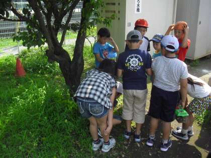 2組では、「校庭にいる虫の、好きな場所を知ろう」をめあてにして、虫を探したり、虫がいそうなところを見付けたりしました。水曜日には祖師谷公園での虫探しに取り組む2年生。校庭との環境の違いも、気付いてほしいところです。