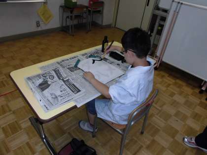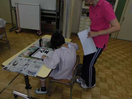 学習室では、5時間目に4・5年生が、1学期最後の書写の学習をしました。夏のオリンピックに向けて、応援の心をこめて「金メダル」と筆で書きました。