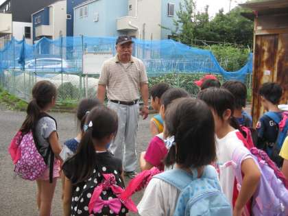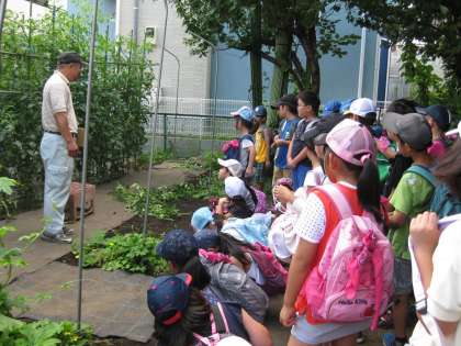 今日は農家の仕事を学習するために、高橋農園に見学に行きました。高橋さんの説明を聞いた後、実際に畑を見学しました。ナスやトマトやサトイモ等たくさんの野菜が元気に育っていました。野菜作りには土壌が大切なこと、収穫した野菜はJAや家の近くの販売所で販売していること等多くのことを学びました。農業の大変さややりがいを学ぶことができました。