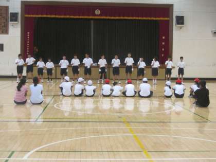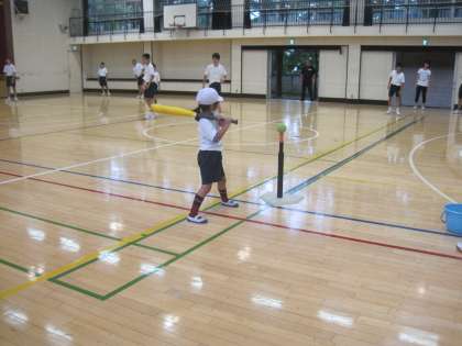 3・4時間目に、上祖師谷中学校I組のみなさんとの交流会を行いました。小雨が降る中、傘を差して安全に気を付けて歩き、上祖師谷中学校まで行きました。体育館に集まり、中学生のお兄さん・お姉さんたちに「Tボール」を教えてもらいました。ボールキャッチの仕方・投げ方・バッティングの方法等を優しく丁寧に教えてもらうことができて、子どもたちは、みんなとても嬉しそうでした。最後にハンドベルで「ビリーブ」という曲の演奏を披露してもらいました。ベルの音のきれいな響きに、聴き入っていました。「中学生ってすごいね!」と尊敬と憧れの思いをつぶやいている子がいました。2学期・3学期にもまた、交流会を行う予定です。