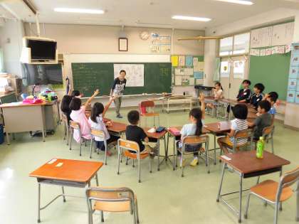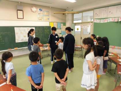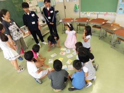 1年生と2年生の10名がこの教室に参加しました。中学生のお兄さんとお姉さんが、一緒になって活動に参加してくれたことで、安心して英語を通しての楽しいひとときを過ごすことができました。