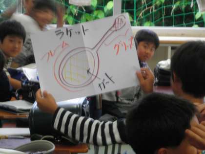 テニスクラブでは、ラケットの様子やガットについて、テニスのルールについて