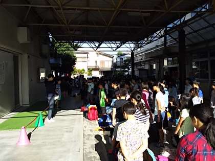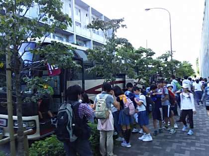 7時に学校に集合し、出発式を行いました。真夏の強い日ざしの中、仙川駅近隣から3台のバスで出発です。